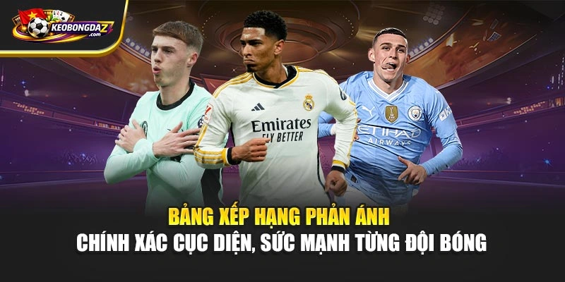 Bảng xếp hạng luôn là yếu tố quan trọng phản ánh rõ nhất cục diện, sức mạnh thực tế của các đội bóng sau mỗi vòng đấu. Cùng với hệ thống dữ liệu được cập nhật liên tục tại Kèo Bóng Đá, người xem dễ dàng theo dõi sự thay đổi thứ hạng, điểm số, hiệu số bàn thắng để có cái nhìn toàn diện, logic hơn về diễn biến giải đấu.
